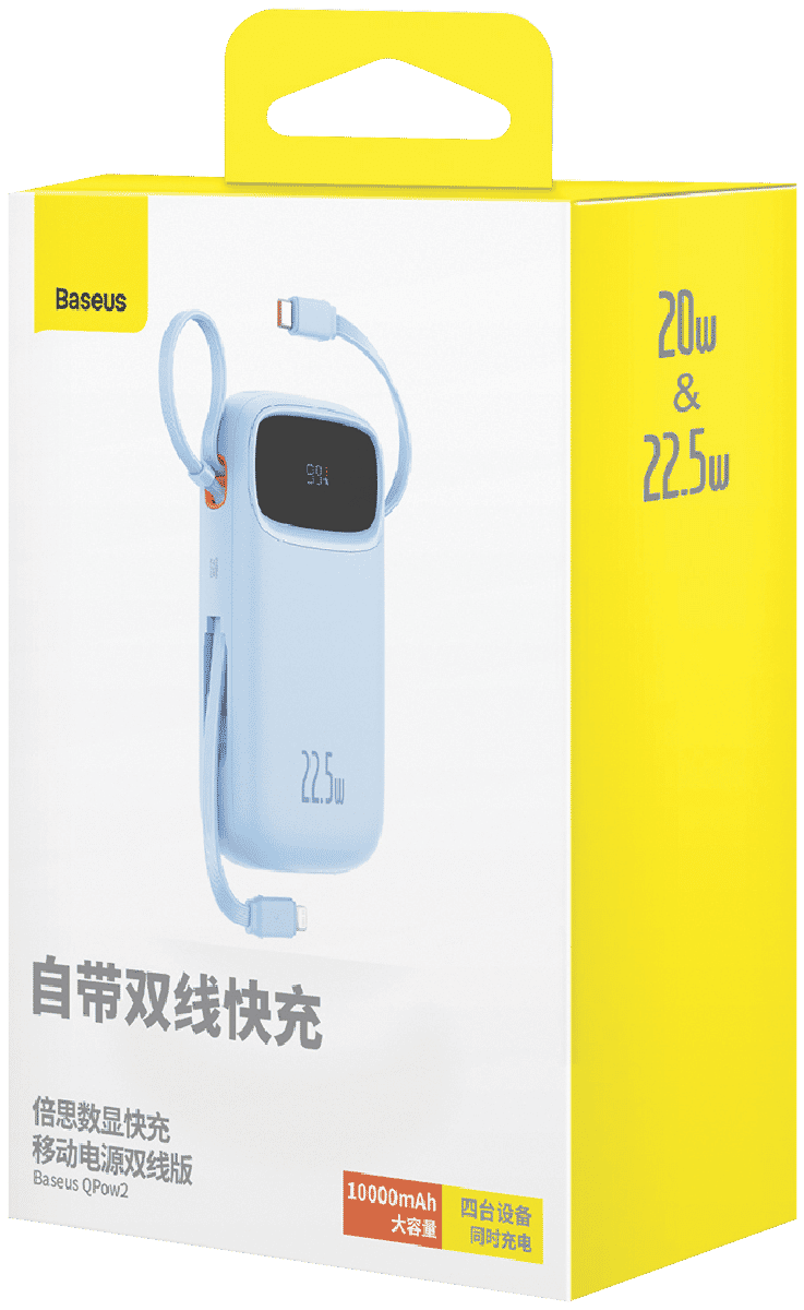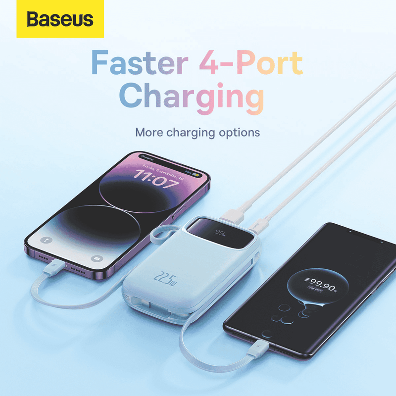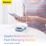 Power up your devices on the move with the Baseus Dual-Cable Fast Charge Power Bank. This compact and lightweight power bank packs a punch with 22.5W fast charging to juice up your iPhone, Android or USB-C devices.
