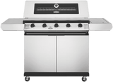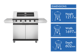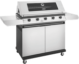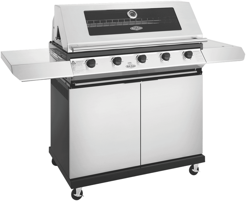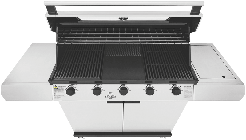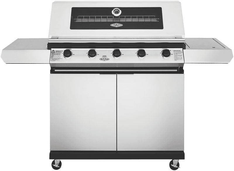 BeefEater 1200 Series Stainless Steel 5 Burner BBQ & Trolley w/ Side Burner, Cast Iron Burners & Grills