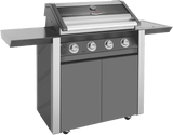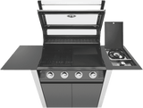 BeefEater 1600 Series Dark 4 Burner BBQ & Trolley w/ Side Burner, Cast Iron Burners & Grills