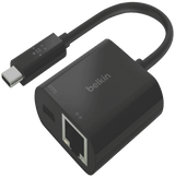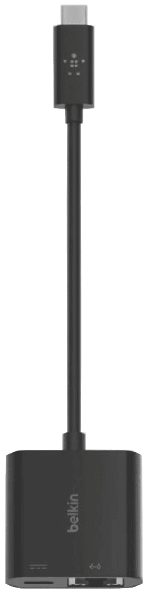 Plug into high-speed connectivity and charging power for your laptop with the Belkin USB-C to Ethernet + Charge Adapter. This sleek and compact adapter unlocks wired internet access via ethernet while simultaneously charging your device, making it the ideal solution for home, office and travel use. Its plug-and-play functionality allows you to simply connect the adapter to your USB-C enabled laptop and ethernet cable to get set up in seconds.