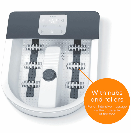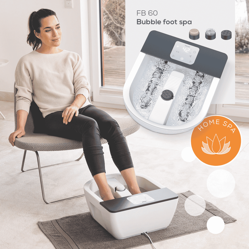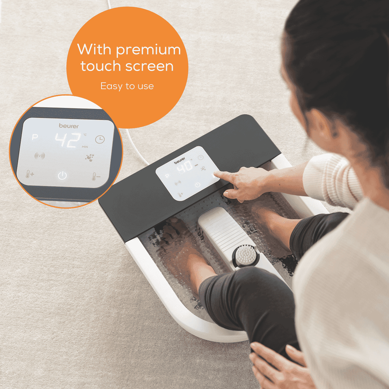 The touch screen and double-walled insulation make this foot spa easy and enjoyable to use. It also includes three pedicure attachments for achieving smooth, beautiful feet. Bring the luxury of an at-home foot spa to your life with the Beurer Deluxe Foot Spa, FB60.