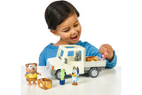 The Tradies Ute is just the right size for both Sparky and Bluey to ride in. Kids will love to customize the Ute with the included sticker sheet. The figures, vehicle and accessories are just the right size for pre-school hands to move and play with. Toddlers will love to recreate some of the most memorable moments from the show with these adorable toys!
