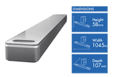 Experience home entertainment in a whole new way with this Bose soundbar. Its slim profile and matte white finish complement any decor. The manufacturer's part number for this product is 882963-5210. Bring home cinema-quality sound to your living space today.