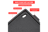 - Non – Stick: With proper high temperature oil, the cast iron BBQ pan becomes a naturally nonstick finish. The flat surface allows easily cook.