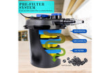 - Multi-Stage system allows biological, mechanical and UV filtration so the water quality of your pond is excellent