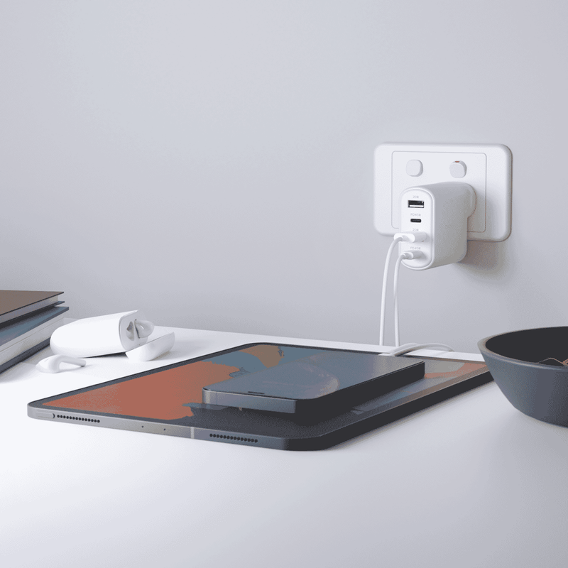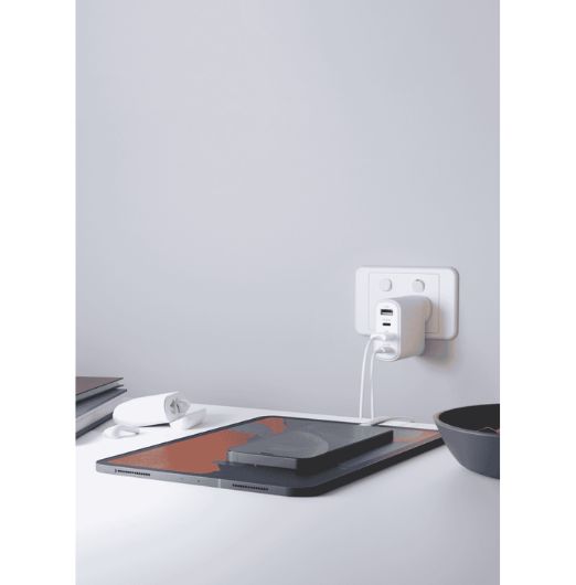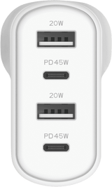 With 45 watts of power, you'll be able to quickly get your devices from empty to full battery. This charger's compact design takes up minimal space on your desk or nightstand. Measuring just 78.10mm high x 62mm wide x 30mm deep and weighing only 122 grams, it's ideal for home, office, or travel use.