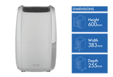 The Aria Dry also has an electronic anti-frost device, electronic display, and laundry mode. Weighing 13.5kg with dimensions of 600mm high, 383mm wide and 255mm deep, it combines modern design and advanced technology for effective dehumidification. This dehumidifier comes with a 2 year manufacturer's warranty.