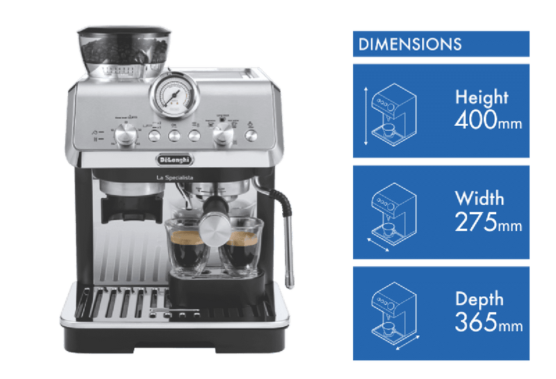 Making great coffee is both a science and an art form so leave it to the DeLonghi La Specialista Arte Manual Coffee Machine EC9155MB to guide you through a simple coffee preparation process with included premium barista accessories and exclusive technologies for perfecting your favourite brew, just like at the local café.