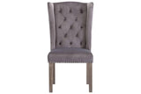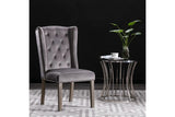 This dinner chair, upholstered in soft-to-touch velvet fabric, provides a comfortable place for dining, reading or just relaxing. The decorative button on the backrest and metal rivets along the edges increase the chair’s classic beauty. Supported by solid rubberwood legs, the dining seat is stable and sturdy.