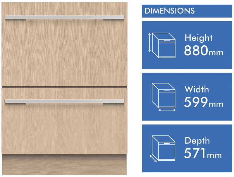 Streamline your kitchen clean up with the Fisher & Paykel 60cm Double Dishwasher. This integrated double dishdrawer with a knock to pause feature provides flexible, quiet dishwashing for households that value both style and efficiency.