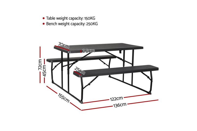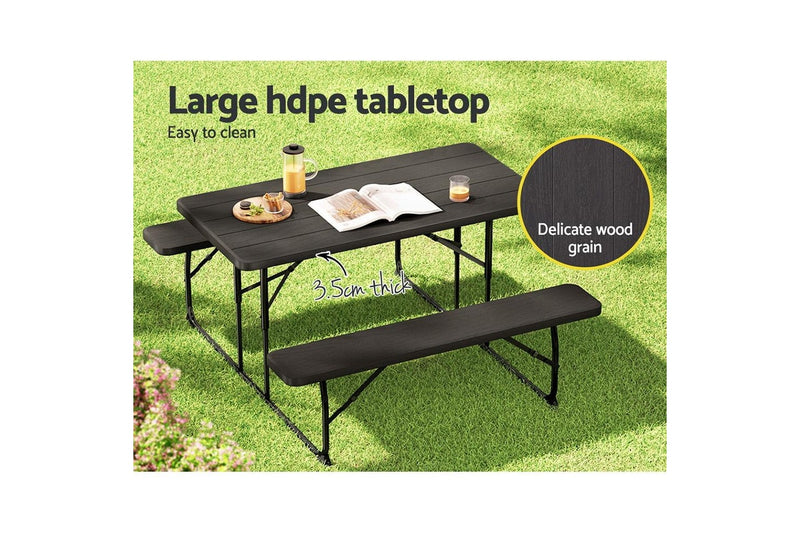 How does a party in the yard with some friends, some beers and some tasty snacks sound? If that sounds perfect, then you will love Gardeon’s 3pc Outdoor Bench Set. Composed of a 3.5cm thick tabletop with a smooth HDPE finish and two matching benches, our outdoor ensemble is made for robust use in all weather conditions and treated for durability and reliability. The powder-coated metal legs are strong, sturdy and rust-resistant, and feature anti-slip pads to prevent slipping. The set is adaptable to most occasions such as BBQs, camping, partying or studying, and it’s foldable design makes it easy to transport and store. The sleek design even adds a unique charm to cafes, restaurants, or festivals. Best of all, the set has your safety in mind with rounded corners and a 250kg bench capacity. Whether you are hosting a party in your backyard or a gathering at your local park, the Gardeon 3pc Outdoor Bench Set is a perfect fit.
