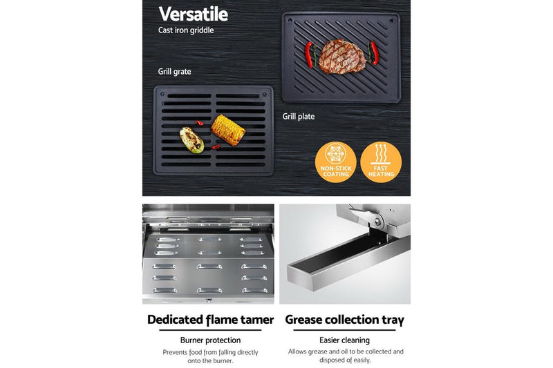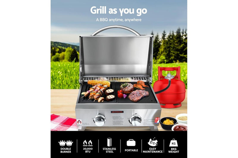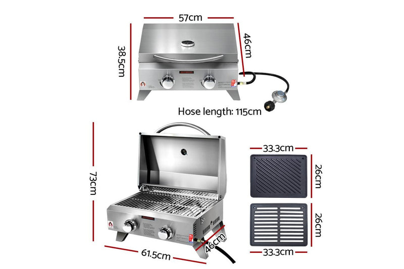Grillz 2 Burners BBQ Grill with Double Sided Plate