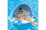 This pool float with a detachable sun shade cover is designed for ultimate relaxation in the water, offering comfortable lounging and sun protection.