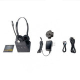 Box content:Headset, base, power supply, USB cable, deskphone cable, documentation, Quick Start guide