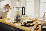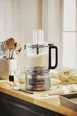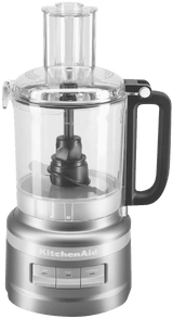Easily puree vegetables with this KitchenAid 9 Cup Food Processor 5KFP0919ACU in Contour Silver. This KitchenAid food processor has a 250 watt electric motor, a nine cup capacity and two speeds with a pulse setting to give precise control over the outcome. As a multifunctional machine, this food processor comes with a reversible disc, a dough blade, shredding disks and slicing disks so you can cop, puree, knead, shred and slice all in the same machine. The sleek silver finish is a simple texture that can easily be incorporated into the contemporary kitchen, and even be matched to other kitchen appliances.