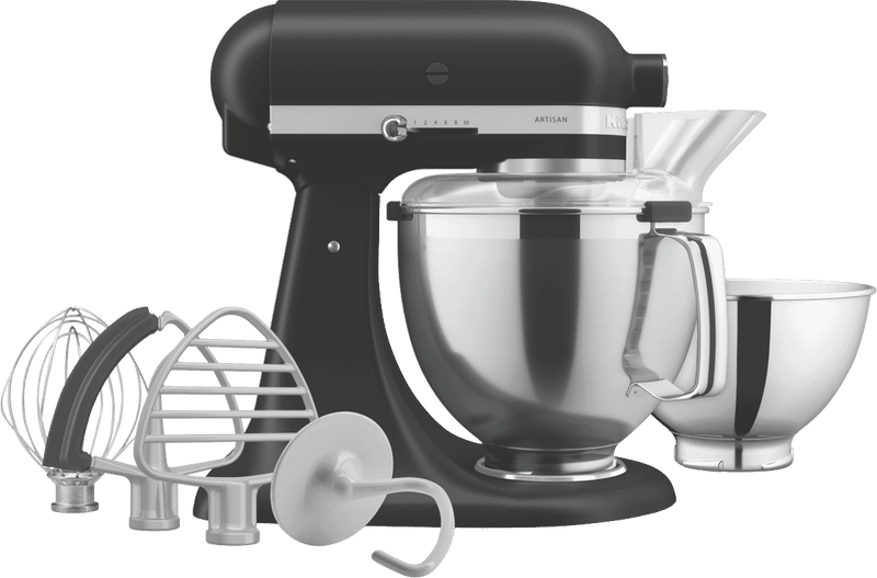 The KSM195 KitchenAid Artisan Series Tilt-Head Stand Mixer with Premium Accessory Pack has the capacity and tools for every occasion. This model includes both a 2.8L and 4.7L bowl, so you can do more - mix up batter in one and then whip up a silky frosting in the other. In addition, the exclusive accessory pack includes a flex edge beater, pastry beater, dough hook, wire whip and redesigned secure fit pouring shield. This durable tilt-head stand mixer was built to take it all on, and features 10 speeds to gently knead, thoroughly mix and whip ingredients for a wide variety of recipes
