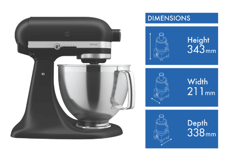 | Additional Features: | 4.7L Two Toned Bowl, 2.8L Bowl, Pouring Shield, 6-Wire Whip, Flex Edge Beater, Dough Hook, Pastry Beater |