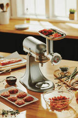 Take your kitchen creations to the next level with the KitchenAid Metal Food Grinder Attachment. This sturdy die cast metal attachment transforms your KitchenAid mixer into a powerful food grinder, allowing you to create your own freshly ground meats, breadcrumbs and more.