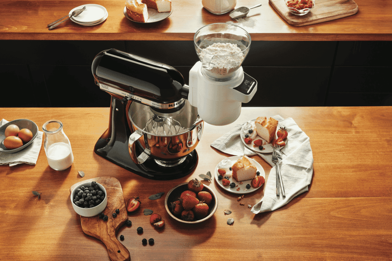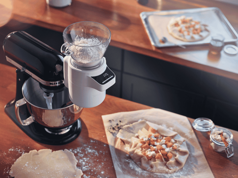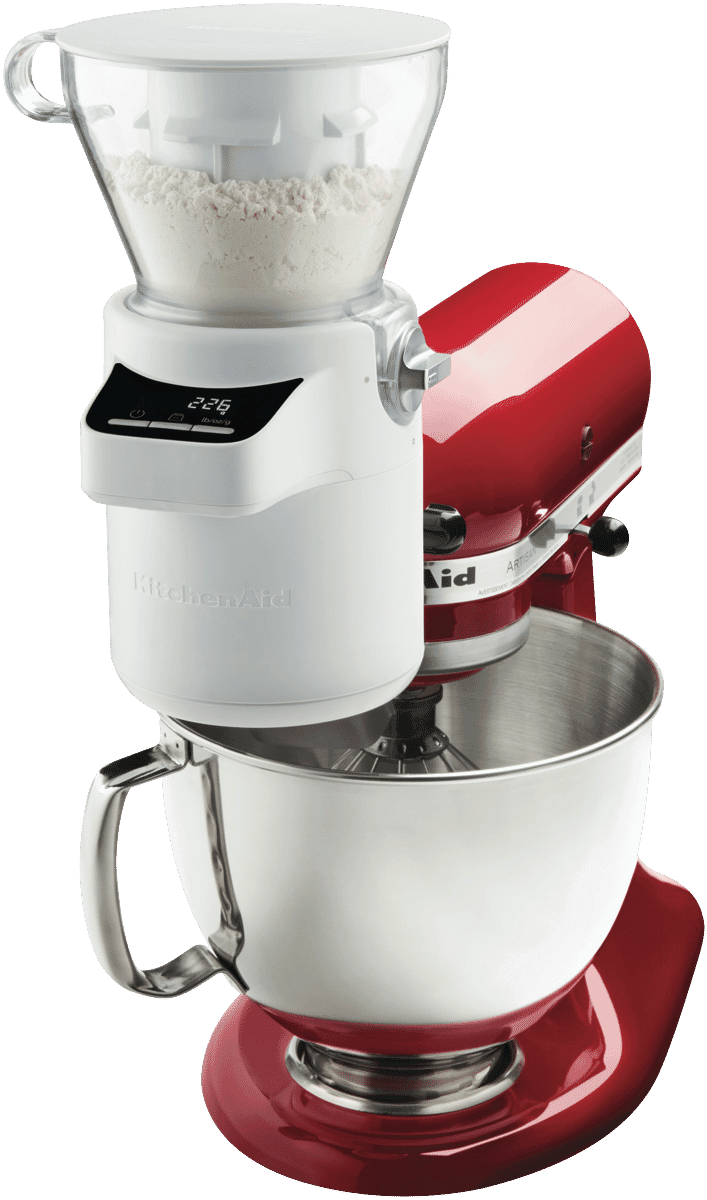 The large 4 cup capacity hopper and digital scale technology ensures efficient sifting and precise measuring every time. Compatible with all domestic KitchenAid stand mixers, the durable white plastic construction securely attaches to the mixer for hands-free operation. Weigh, sift and scale with ease, creating perfect batters, doughs and more. Visualize fluffy cakes and airy breads coming out of your oven after utilizing this attachment.