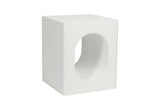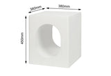 Featuring a white textured melamine surface, it adds a fresh and clean aesthetic to your décor. Its standout feature is a circular cut-out, cleverly designed to provide additional storage for magazines, books, or small essentials. Compact yet practical, this table is ideal for placing a lamp, plants, or decorative items.