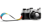 - The camera toy has a moving lens, buttons to press, film to load in the back and a strap,