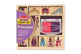 When your little princess is ready to have a ball, she will love designing her own royal adventures with this exquisitely detailed stamp set. A two-colour stamp pad, five coloured pencils and 9 fabulously regal stamps are all packed in a sturdy wooden tray.