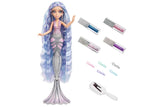 Beyond the waves, beneath the surf, into the deep blue… follow the fabulous fins of Mermaze Mermaidz™ to discover something amazing! The Orra™ deluxe fashion doll has a unique, sculpted tail and gown with an iridescent finish and multicolor glitter touches. This doll includes multiple ways to play with a color change feature, wear and share hair play, and more! Her gown/tail performs a full, dramatic color change from top to fin when submerged in ice cold water. Watch it transform from ombre pink and silver to stunning black. Her tail also doubles as a stand— stand her upright with her fin straight down, or flip up each side of her fin for another way to stand. Orra™ has articulation points at the neck, shoulders, elbows, wrists, torso, waist, fin, and for the first time ever—knee! Click her knee into different angles and it will hold its shape.