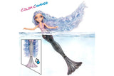 To activate the color change tail and gown, pour ice cold water over her body or dip her into a container with ice cold water. Perfect for play in and out of water! Note: The doll’s hair may not appear the same after being submerged in water.