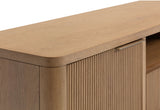 Design: The unit's fluted timber panelling adds a refined, textured element that elevates the visual appeal of any room. This elegant detail creates a sophisticated focal point, making the entertainment unit a standout piece.