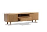Construction: Crafted from rubberwood and finished with an oak veneer, the Miran Entertainment Unit is built for strength and durability. The quality craftsmanship ensures that the unit retains its beauty and functionality for years, combining style with long-lasting performance.
