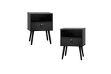 Oikiture 2 X Bedside Tables Side Table w/ Leather Handle Black