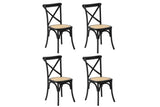 Oikiture 4PCS Crossback Dining Chair Solid Birch Timber Wood Ratan Seat Black