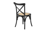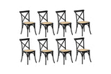 Oikiture 8PCS Crossback Dining Chair Solid Birch Timber Wood Ratan Seat Black