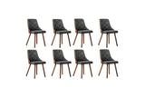 Oikiture Dining Chairs Wooden Chair Kitchen Cafe Faux Linen fabric Padded Seatx8