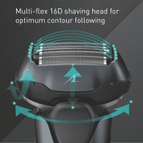 The quick slit blade paired with quick lift foil and finishing foil gently lifts hairs and cuts cleanly below skin level for smooth skin. Powered by a high-performance 14,000cpm linear motor, the heads move independently in 16 directions to trace every contour. Equipped with intelligent shaving sensors and multi-fit arc foils that flex to match different face shapes, this electric razor delivers personalized shaves tailored to you.