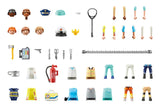 - Accessories: 1 firefighter helmet, 1 axe, 1 fire extinguisher, 1 stethoscope, 1 board, 1 police cap, 1 pistol, 1 nail strap, 1 first aid kit