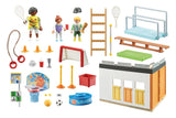 Gym extension for the Large School (71327) with three PLAYMOBIL figures and numerous sports equipment for active role-playing fun.