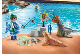 Creativity, fun, and joy await with the PLAYMOBIL Keeper with Animals Giftset! This enchanting set is not just a toy; it’s a party in a box. It comes already packaged in a decorative box that even has space for the birthday child’s name. Say goodbye to the hassle of wrapping – this gift set is already perfectly presented. Dive into the world of underwater birthdays with the adorable seals. In this unique set, the seals celebrate their birthday, and their dedicated animal caretaker is dressed as a fish, equipped with a trumpet for a grand entrance. Using a fishing rod, she feeds the seals a feast of fish stored in a cooler with ice cubes and a giant salmon. But that’s not all! The star of the show is the impressive sea lion, who, with the help of a special adapter, can balance a birthday cake on its nose. Both the sea lion and the seal have movable heads and flippers, adding to the realism of the play.