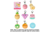 Collect all eight, including Strawberry, Kiwi, Grapes, Watermelon, Pineapple, Orange, Banana, and a rare mystery style! Each plush includes a metal keychain with a lobster clasp for easy detaching. Appropriate for ages 8 years and up.
