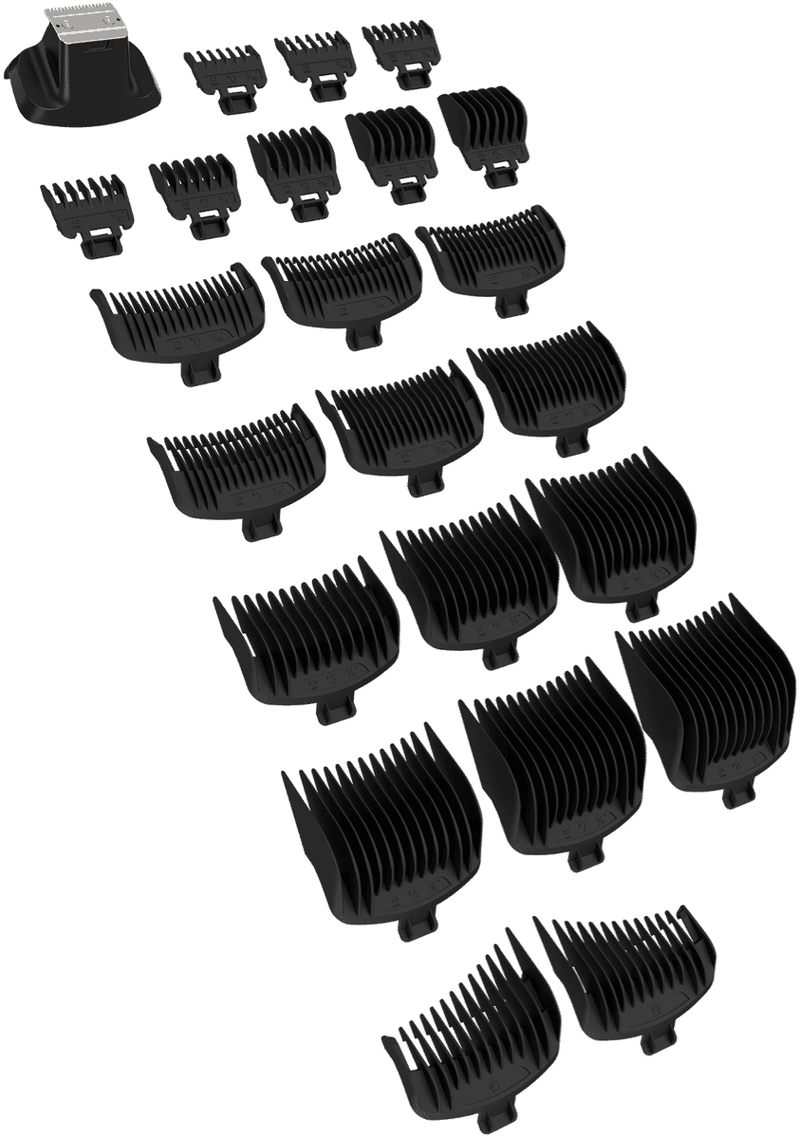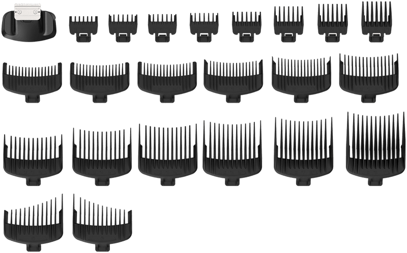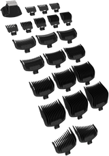 | What's In The Box: | 14 x Curved guide combs (1.5 - 25mm). 8 x Detail Comb Guides (1.5 15mm), Premium Travel Pouch, Lubricating Oil, Cleaning Brush |