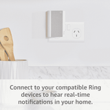 Enhance your home security with the Ring Chime Pro. This compact device packs a powerful punch, amplifying notifications from Ring Video Doorbells and Cameras up to 2,000 square feet.