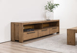 * Features Undermount Soft Close Drawer Runners with Velvet Lined Drawers * Swing Cord Cover on back of the Entertainment Unit for when not in use * Constructed from Mindi Timber and Veneer Click here to view Furniture Safety Information