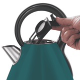 Enjoy a classic experience with a modern twist thanks to the Russell Hobbs Legacy Deep Lagoon Kettle RHT445DLG. Shaped like the original RH designs from over 50 years ago, this kettle isn't just a statement of style. Make your whole home tea or coffee with 1.7L of capacity. Position perfectly with a 360 degree base allowing any kettle position along with convenient cord storage underneath, plus a handy indicator light while the kettle boils. Keep limescale away with the removeable and washable filter inside.