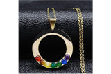 Sacred Geometry 7 Chakra Round Necklace Reiki Jealing Stainless Steel Gold