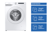 With a 5 star energy rating and A+++ energy efficiency, this washing machine helps lower your energy bills. Backed by Samsung's 2 year warranty, it delivers reliable and efficient performance wash after wash. The manufacturer's part number for this product is WW80T504DTW. Make easy work of laundry day with the Samsung 8kg Front Load Washer.