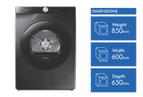 The reversible door provides flexible installation, while the black finish blends seamlessly into any laundry. Monitor and control your cycles easily with the LED display and touch controls. At 600mm wide, 850mm high and 650mm deep, this dryer fits most laundry spaces.