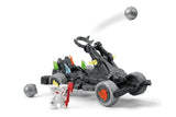 Oh dear! The creatures of the Shadow World have snatched the catapult as well! Whoever owns the catapult can use it to fearlessly travel through Eldrador and face down any enemy. On board the catapult are two projectiles that can be inserted in the front. Pyramids made of enemy MINI CREATURES can easily be toppled with it! The driver has also equipped himself for close combat. But the catapult looks pretty fierce by itself. Besides, there’s a secret hiding place somewhere. Who can find it? By the way: All the collectible MINI CREATURES (sold separately) fit into the cockpit.