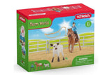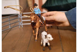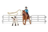 Yeeeeee-haw! Saddle up the Quarter Horse…it’s time to practice for the rodeo! Grab the lasso and show off your roping skills. The Cowgirl Team Roping Fun playset from Schleich® Farm World comes with a specially painted Texas Longhorn calf figure, a toy Quarter Horse, a toy cowgirl, fences, a saddle, and of course, the lasso. Recommended for cowgirls, cowboys, and ranch hands ages 3 and up.