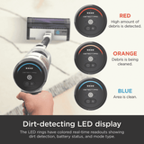 With up to 60 minutes of fade-free power from the removable Li-ion battery, you can clean your entire home in one go. The LED display provides real-time runtime feedback, so you know just how much cleaning time is left. Designed for whole-home cleaning, this Shark vacuum comes complete with a motorized floorhead, crevice tool and pet multi-tool to handle dirt and hair on furniture, stairs, cars and more. The freestanding charging dock provides convenient storage.