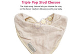 Made with super soft velour towelling, these functional and fabulous bandana bibs have a waterproof backing to keep your little one clean and dry from dribbles and spills. An essential item for teething tots, Neckline sits neatly against your baby’s chest and has a triple pop stud closure. This cool little bandana bib is available in numerous bright and fun colours – perfect for a day out.